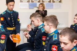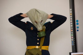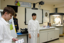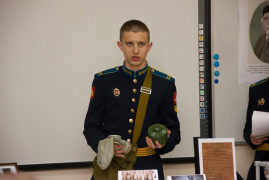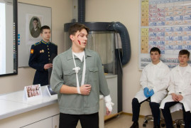 Кадеты рассказали о биографии учёного, его личностных качествах, вкладе в развитие науки химии. Продемонстрировали современную модель противогаза, рассказали о его устройстве. Объяснили задачи работы войск радиационной, химической и биологической защиты. Вспомнили кадет – выпускников СПКУ и РХБЗ в г. Кострома, которые стали лейтенантами и стоят на службе нашей Родины.