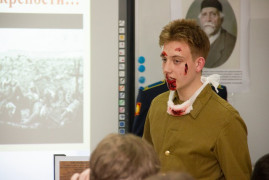 Воспитанники вспомнили «Атаку мертвецов» 6 августа 1915 г. в г. Осовец. «Это – наши герои, великие люди. Это – подвиг наших русских бойцов, защищавших свою Родину».