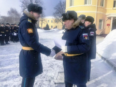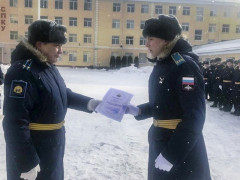 Затем старший воспитатель Ризабек Кабайдуллович Акинжанов и педагог-организатор Оксана Сергеевна Романова вручили грамоты (приказ № 135 от 20.02.2023 г.) от начальника училища Вячеслава Валерьевича Преснухина за особые личные заслуги, разумную инициативу, усердие и отличие в учёбе и в честь празднования Дня защитника Отечества и поздравили следующих кадет: