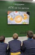 Затем перешли в зал, где кадеты смогли себя попробовать в роли оператора комбайна и сельскохозяйственного дрона, побывать на виртуальной экскурсии на современной ферме, молокозаводе.