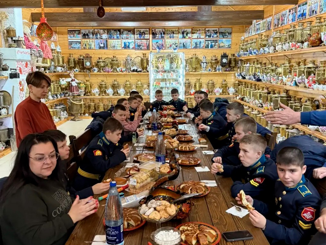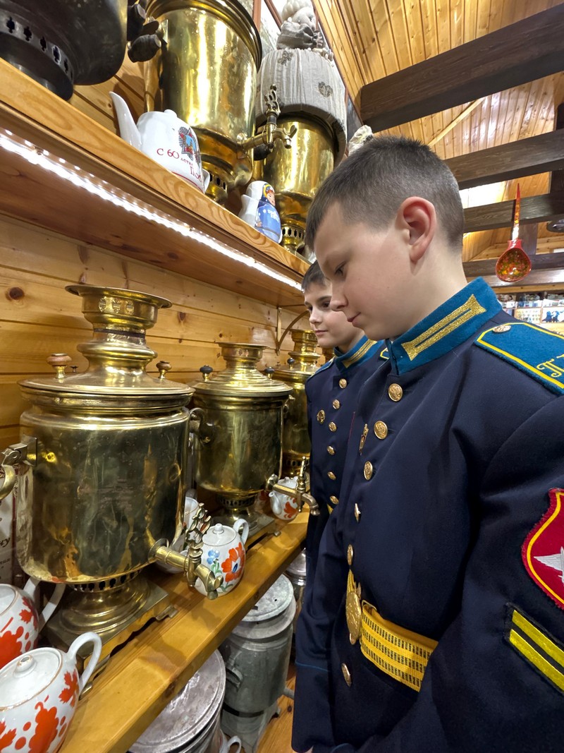 Воспитанники увидели самовар-шар и самовар-кубок, необычный самовар-кастрюлю и походные модели самоваров, с которыми путешествовали военные и купцы. Особое впечатление произвёл на кадет настоящий трактирный гигант - самовар ёмкостью 50 литров. Есть в коллекции медный самовар, которому более 300 лет и уникальный экземпляр 1814 года, выпущенный в честь победы над Наполеоном.