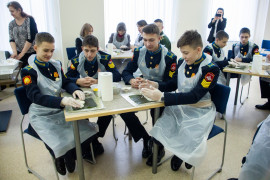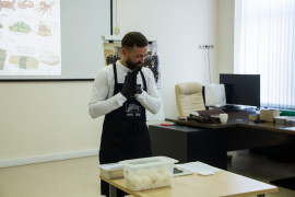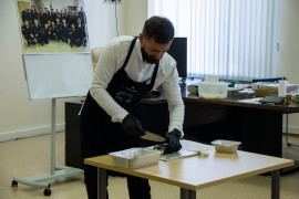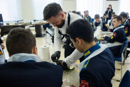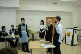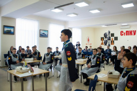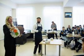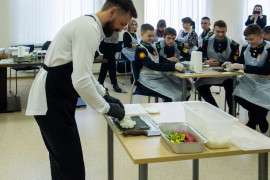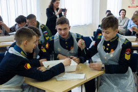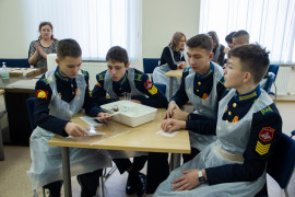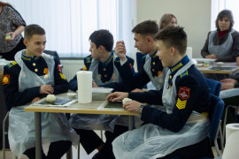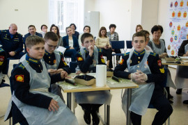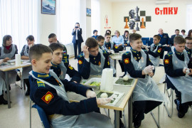 Говоря о еде, мы должны помнить, что в каждом рецепте хранится культурный код страны происхождения, история его создания, память, культура обеденной трапезы. Анатолий Викторович рассказал и показал кадетам, как правильно держать палочки, что ролл можно есть руками, но ни в коем случае нельзя протыкать ролл вилкой и палочками. Кадеты задали шефу все интересующие их вопросы, на которые гость с удовольствием ответил.