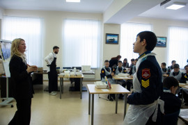 Есть или не есть? Такой вопрос стоял перед кадетами 8В класса на интегрированном уроке химии и английского языка, который провели Елена Борисовна Казановская, Елена Владимировна Галета и специальный гость, шеф-повар Анатолий Викторович Галета.