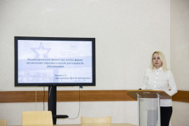 Преподаватель английского языка Анна Эдуардовна Хохлова поделилась опытом с коллегами из общеобразовательных учреждений края о проектно-исследовательской деятельности воспитанников. Тема её мастер-класса: «Индивидуальный проект как особая форма организации образовательной деятельности».