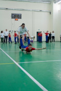 После чего последовала разминка, проведённая воспитателем, которая объединила всех участников. Сформировав три команды – «Позитив», «Апельсин» и «Дружба» – приступили к веселым конкурсам и эстафетам. Дух соревнований сразу же поднял настроение, улыбками засияли лица зрителей и членов команд. Болельщики и зрители следили за ходом событий и очень «громко переживали».