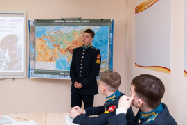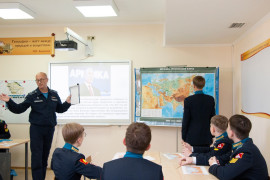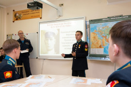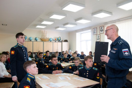 В рамках конкурса профессионального мастерства «Педагог года СПКУ – 2024» состоялся открытый классный час у воспитанников 9 «Б» класса Ставропольского ПКУ под названием «На службе Родине и флоту». Провел внеурочное мероприятие воспитатель 9 «Б» Виктор Евгеньевич Аношков.
