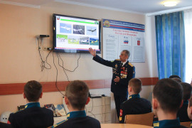 Александр Юрьевич Варава рассказал о военной профессии «летчик», об истории её возникновения, о том, сколько существует институтов в России, где можно научиться лётному делу. Заострил внимание на физической подготовке при поступлении в вузы, объяснил особенности вступительных экзаменов. Рассказал гость классного часа и о своем институте, о специфике профессиональной деятельности и формах организации военной службы, психологической характеристике данной профессии, описал требования со стороны этой профессии к человеку. Поделился интересными случаями из личной жизни за время обучения в институте и военной карьеры.
