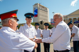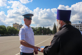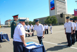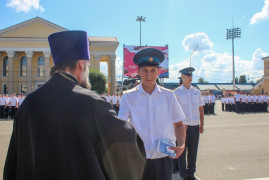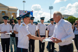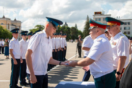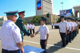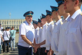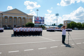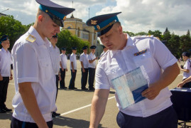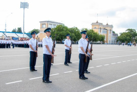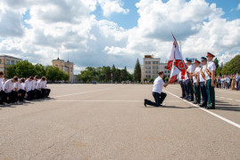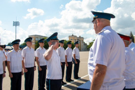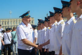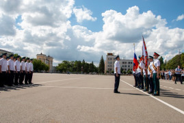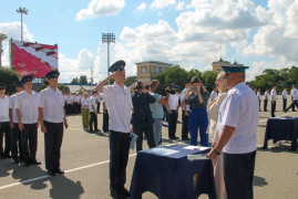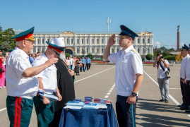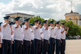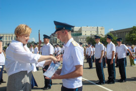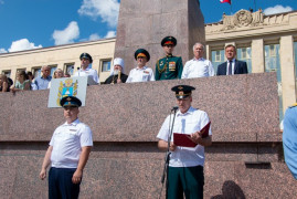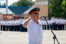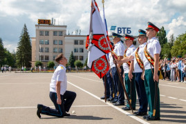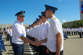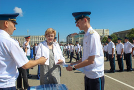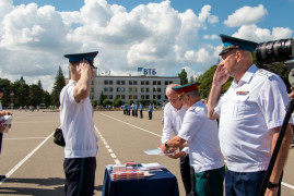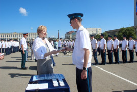 Весь личный состав училища ответил: «Родине служить!», после чего над площадью прокатилось троекратное «Ура!».