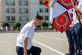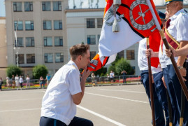 Затем состоялся главный ритуал – церемония прощания со Знаменем родного училища.