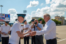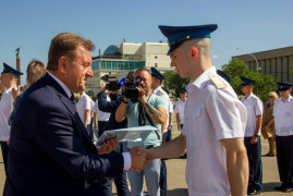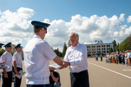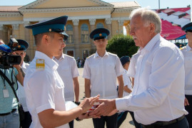 Приветствуя главных героев торжества, спикер краевой Думы Николай Великдань пожелал им всегда помнить текст принятой присяги и быть преданными своей Родине: «Вы покидаете стены одного из лучших учебных заведений России. В училище вам дали не только качественное образование и познакомили с азами военных наук, но и привили высокие нравственные ценности. Вас научили любить Отчизну, быть дисциплинированными, привили любовь к труду. Сегодня мы чествуем лучших из лучших. Взявших на себя смелость и мужество принять на свои еще юные плечи груз ответственности и преемственности от героических поколений наших предков и нынешних защитников Отечества».
