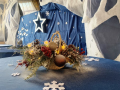 Космическая чайная комната 6 «Е» класса украшена ёлкой «Достижений», которая отражает стремление кадет к достижению новых вершин и успехов в учёбе и спорте. Кадеты оформили подарки для участников СВО, гостей чайной комнаты встречают символы уходящего и наступающего Нового года, выполненные в технике оригами кадетами класса.