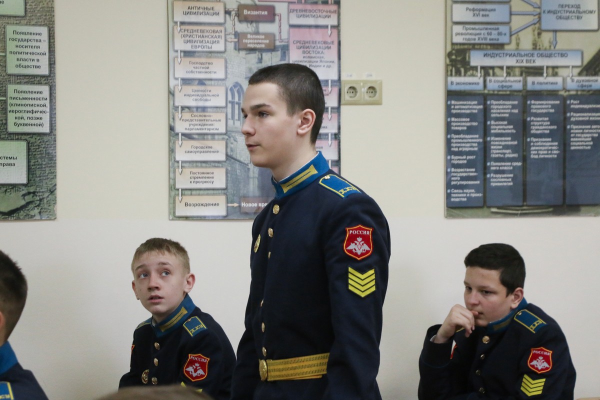Во время занятия кадеты также смотрели сводки новостей на английском языке и обсуждали различия в передаче информации иностранными и российскими СМИ.