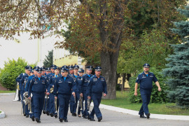 После торжественного построения в честь открытия смотра спортивной работы, выпускники этого учебного года сдавали нормативы по спортивной подготовке и военно-прикладной подготовленности: