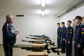 В целях определения уровня спортивной подготовленности обучающихся 7-го учебного курса, оценки качества организации физической подготовки в Ставропольском президентском кадетском училище, а также выполнения массовых спортивных разрядов по виду спорта «полиатлон» (троеборье с бегом) и по военному многоборью, в соответствии с планом Управления физической подготовки и спорта Вооруженных Сил Российской Федерации в СПКУ состоялся первый этап смотра спортивной работы среди одиннадцатиклассников СПКУ.