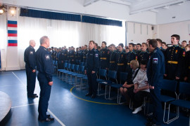Подведение итогов первой четверти 2022-2023 учебного года состоялось у воспитанников учебных курсов 9-11-х классов Ставропольского президентского кадетского училища. По этому поводу прошла торжественная линейка. Начальник Ставропольского ПКУ Вячеслав Валерьевич Преснухин поздравил воспитанников и педагогов с окончанием первой четверти и началом осенних каникул и напомнил старшеклассникам, что они – лицо училища, на них равняются младшие курсы. Необходимо помнить об этой ответственности, держать высокую марку качества образования, спортивного и творческого развития.