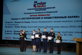 С 12 по 17 мая на базе Московского кадетского корпуса «Пансион воспитанниц Министерства обороны Российской Федерации» проходил X Международный фестиваль инновационных научных идей «Старт в науку», посвященный 80-летию Великой Победы. Его участниками стали свыше 300 обучающихся 8-11 классов 32-х довузовских образовательных организаций Министерства обороны Российской Федерации и Минского суворовского военного училища Республики Беларусь, в том числе и кадеты СПКУ.