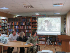Гости и участники мероприятия посмотрели видео, на котором ставропольский поэт, а также участник СВО Сергей Лобанов читал стихотворение «Ты выжил там, где царствовала смерть», посвящённое подвигу своего друга Александра Луганского. Сборник стихотворений Сергея Лобанова «На поэтическом дежурстве» Луганский подарил библиотеке.