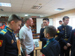 Встреча прошла в неформальной обстановке. После завершения официальной части, кадеты окружили гостей и буквально забросали вопросами о современной военной технике и вооружении армии России, о важности армейской дружбы и взаимовыручки, о применении маскировочных сетей и окопных свечей, которые ребята изготовляют для нужд спецоперации.