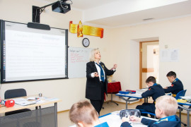 Открытый урок русского языка по теме «Исконно русские слова. Заимствованные слова» прошёл у воспитанников 6 «Д» класса Ставропольского президентского кадетского училища. Провела занятие преподаватель русского языка и литературы Елена Николаевна Михайличенко.