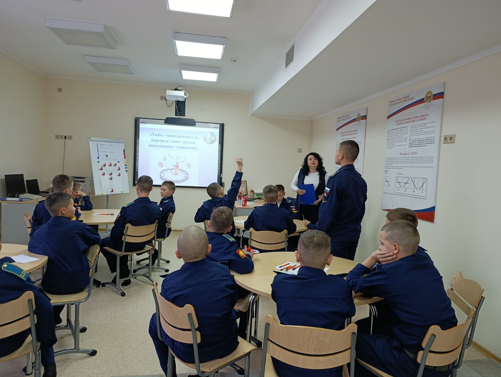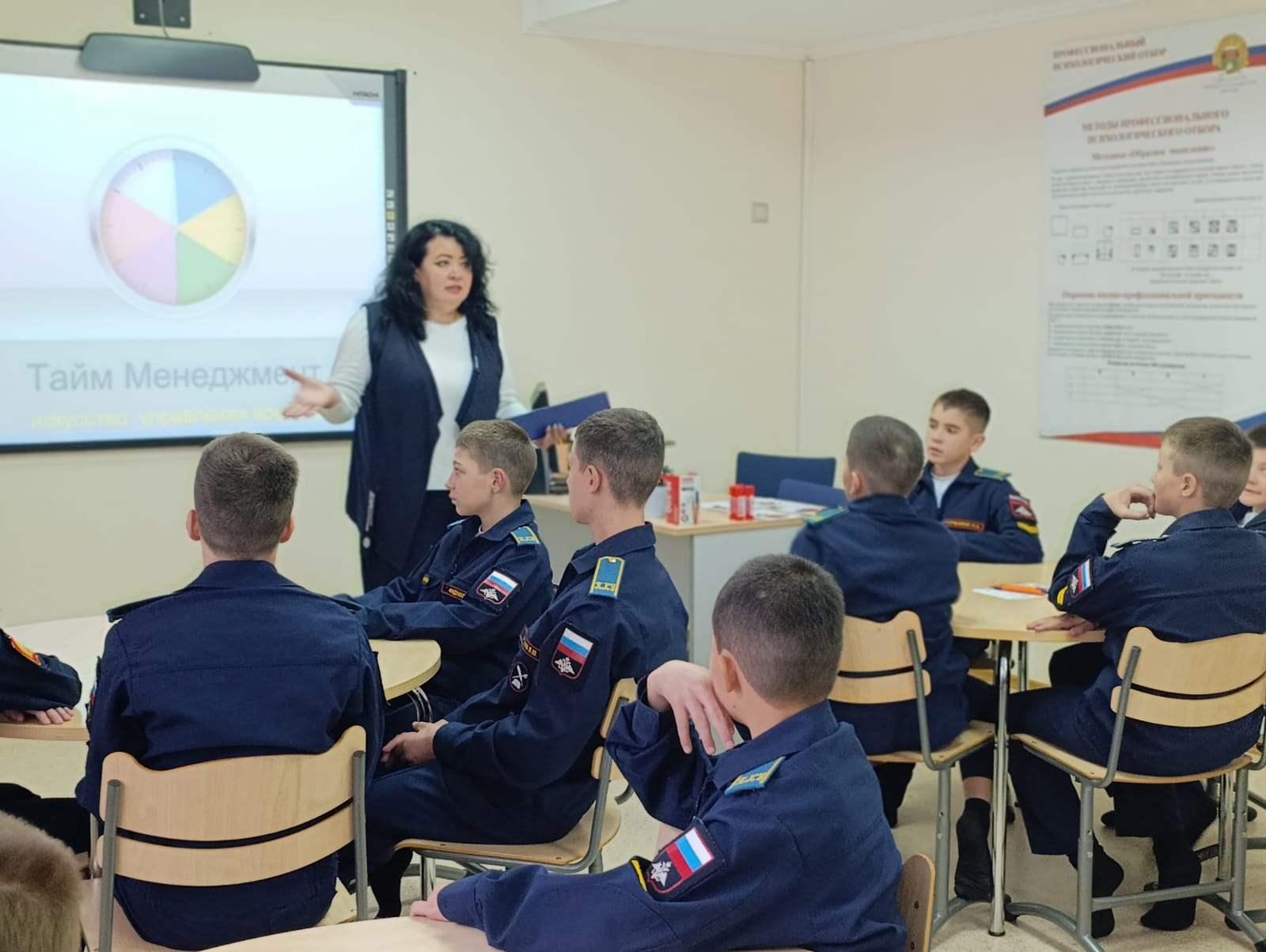 В Ставропольском президентском кадетском училище рамках Недели психологии «Важен каждый», посвященной Всемирному дню психического здоровья, педагогом-психологом 2 курса Оксаной Александровной Башкатовой был проведен игровой тренинг «Тайм-менеджмент» для кадет подросткового возраста, тренинг направлен на обучение кадет 6 классов навыкам управления временем, которые помогут быстрее справляться с текущими делами, освобождая время для хобби и отдыха.