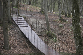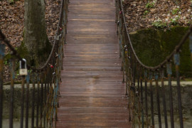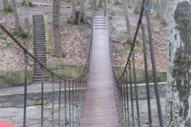 Любители острых ощущений с удовольствием отправились исследовать висячий мост. Его не только фотографировали, но и раскачивались на нём. Под мостом ещё одна чаща бассейна, обычной в ней всегда самая тёмная вода, но в этот раз она была пуста.