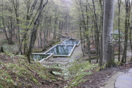Чтобы добраться до трёх образуемых ими бассейнов юным фотографам пришлось преодолеть 293 ступеньки. Там же на территории родников мальчишки увидели беседку со скамьями и столом из деревьев, в которой было удобно отдохнуть и спрятаться от дождя.