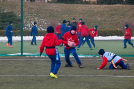 Бесконтактная командная игра, в которой каждый игрок носит пояс с двумя прикреплёнными к нему бирками на липучке, или шорты с нашивками на липучках. Режим игры основан на лиге регби и имеет много общего с сенсорным футболом. На стадионе в течение двух дней проходили жаркие спортивные баталии, несмотря на зимнюю прохладу. Игроки боролись за победу, максимально выкладываясь на поле.