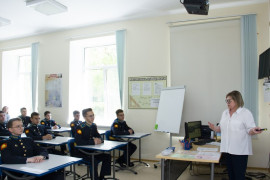 Открытый урок алгебры прошёл у воспитанников 7 «Б» класса Ставропольского президентского кадетского училища. Тема занятия: «Текстовые задачи и здравый смысл». Провела урок преподаватель ОД (математика, информатика и ИКТ) Светлана Николаевна Еромолаева.