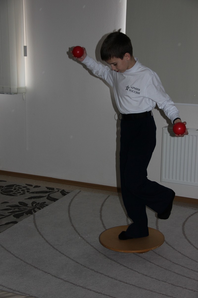 Затем, работая на балансирах на практике почувствовали, что такое устойчивость и как ее удержать, выполняя задания.