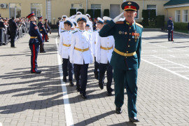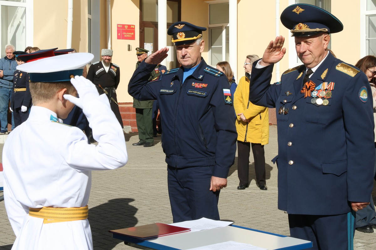 Инспектор южного военного округа, генерал-майор авиации в отставке Дмитрий Николаевич Медяный: «От группы инспекторов управления южного военного округа сердечно поздравляю кадет, их родителей, педагогов с этим знаменательным днём! Новобранцы, сегодня произошла перемена вашего социального статуса, из обычных школьников вы стали кадетами! Это звание ко многому вас обязывает! Все мы надеемся, что за годы, проведённые здесь, вы подготовите себя нравственно, культурно, физически, умственно для того, чтобы стать в будущем настоящей элитой нашей страны».