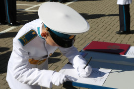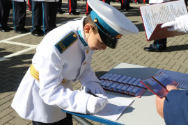 Каждый новобранец уверенно произнёс клятву кадета, а офицеры училища вместе с почётными гостями вручили воспитанникам их первый документ – удостоверение кадета Ставропольского ПКУ.