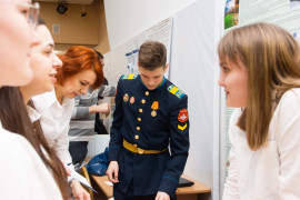 В этой же секции кадет 11 класса Георгий Афанасов представил научно-исследовательскую работу «Разработка полифункциональных гибридных наносистем для применения в военной медицине» (научный руководитель: преподаватель химии Ирина Анатольевна Панова).