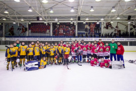 Завершился матч общей фотографией всех хоккеистов на память о встрече.