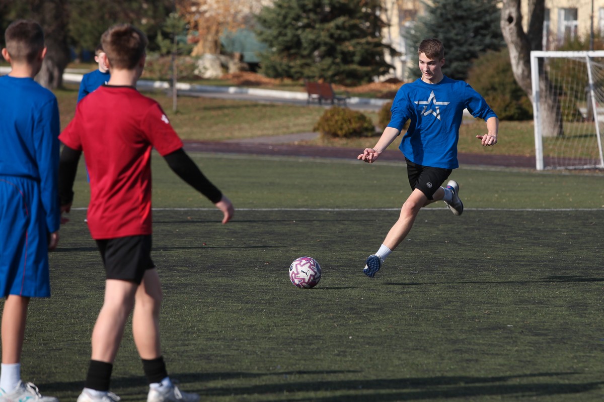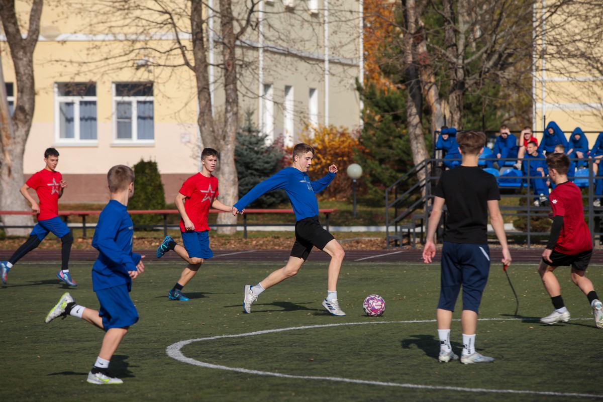 Товарищеский матч по футболу, посвященный Дню военного разведчика, прошёл в Ставропольском президентском кадетском училище между командами воспитанников 4 и 5 учебных курсов. Нет, наверное, человека, который никогда бы не ударил по мячу, не дал пас, не пытался забить гол. Этой игре покорны все возрасты.