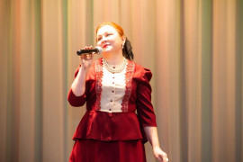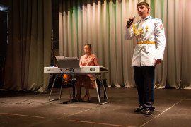 Концертную программу продолжили вокалисты – песню из кинофильма «Офицеры» исполнили Максим Оганесян (7Д) и его мама Милла Евгеньевна Дэвис.