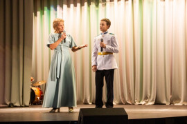 В вокально-инструментальном жанре засияла следующая пара звёзд. «За тебя Родина МАТЬ!» исполнили Кирилл Медведев (5Д) и его тётя Елена Викторовна.