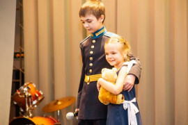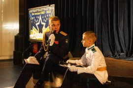 Второй дуэт ведущих – кадет 6-х классов Илья Афанасьев и, впервые оказавшаяся на сцене СПКУ, Марианна Руслановна Попова – предстали в образе героев мультфильма «Ивашка под простоквашкой». Следующую часть концерта проводили они.