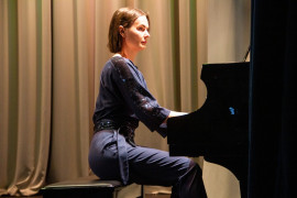 Чарующие звуки рояля заполнили зрительный зал. Композицию Шмитц «Буги-вуги» исполнил Ахмад Джапаров (7Е) и педагог ДО «Фортепиано» Антонина Аркадьевна Рудова.