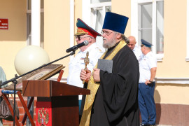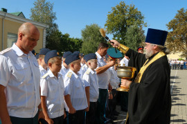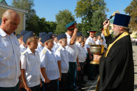 Духовный наставник Аксайского кадетского корпуса отец Александр пожелал кадетам усердия и трудолюбия и окропил святой водой воспитанников и педагогов.