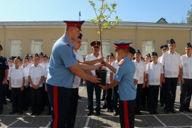 В этом году Ставропольское президентское кадетское училище 15-й раз пополнилось 122 воспитанниками и по сложившейся традиции в начале учебного года каждый вновь прибывший курс сажает на территории училища дерево яблони. Через несколько лет кадеты станут выпускниками, покинут училище, но на память о каждом курсе останется прекрасный яблоневый сад.