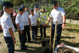 Саженец яблони передали кадеты выпускных курсов: вице-старший урядник, отличник учёбы, победитель олимпиад по русскому языку и математике Антон Кудрявец и вице-старший сержант, отличник учёбы, чемпион Ставропольского края по гиревому спорту, победитель и призёр олимпиад по английскому и немецкому языку Артём Власов.