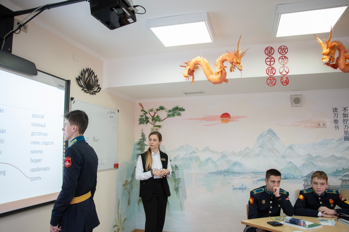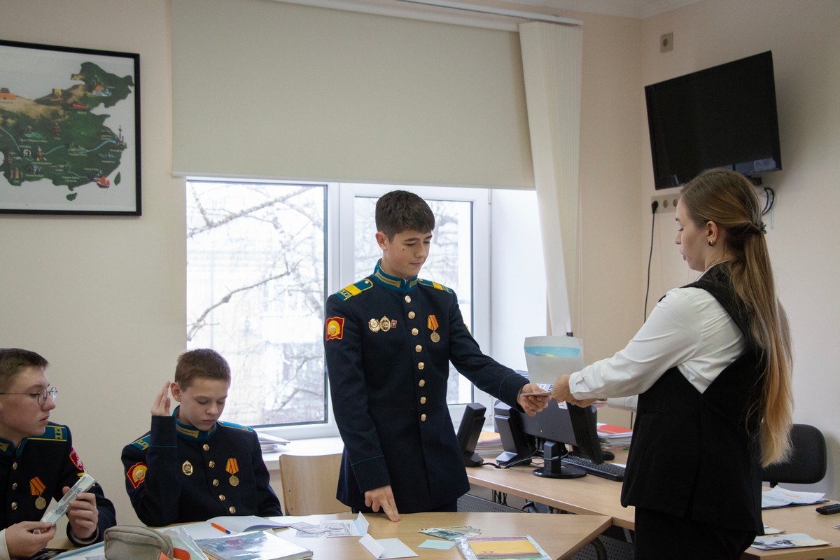 У воспитанников 9 «Б» класса Ставропольского президентского кадетского училища состоялся открытый урок китайского языка на тему «Карманные деньги». Это был урок открытия новых знаний, обретения новых навыков и умений. Провела его преподаватель китайского языка Анна Александровна Морозова. Во время урока кадеты повторили числительные и выучили лексику, связанную с деньгами, планированием бюджета и способами трат. Воспитанники рассказывали, на что они тратят свои стипендии. Также рассмотрели разные валюты (доллары и юани) и их курс к рублю.