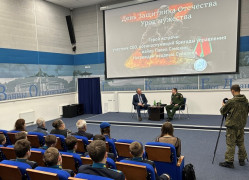 Кадеты 4-ого учебного курса 8-х классов Ставропольского президентского кадетского училища посетили музейно-выставочный комплекс «Россия – моя история» мультимедийную выставку «80 фактов о блокаде Ленинграда», где также стали участниками Урока мужества, посвящённого Дню защитника Отечества, который провёл участник СВО, военнослужащий бригады управления, майор Павел Самохин, награждённый медалью Суворова.