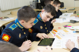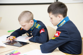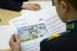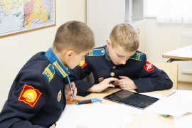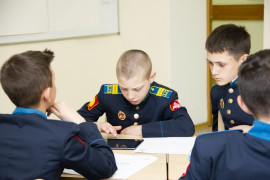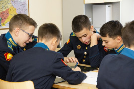 Кадеты Ярослав Рогатовский и Богдан Снегирёв работали с информацией об отелях, предложенных преподавателем, и выбирали среди них подходящий для юноши.