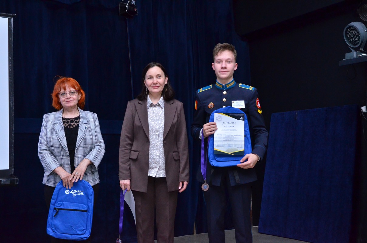 В номинации «Физика» (8-11 классы) кадет 10В класса Арсений Надыбаидзе с работой «Исследование возможностей пьезоэффекта для преобразования механической энергии в тепловую и световую» (руководитель – Нуне Хореновна Минасян) завоевал Диплом I степени. Юный исследователь доказал, что наука может быть не только теоретической, но и прикладной.