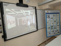 В течении урока ребята увидели премьеру видеоролика о памятных местах в Кирове, связанных с семьёй Циолковских, побывали на виртуальной экскурсии в уникальных интерьерах Театра на Спасской, Библиотеки им. А. И. Герцена, на колокольне Царево-Константиновской церкви.