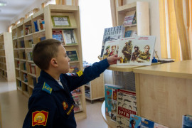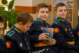 Библиотекарь Елена Алексеевна Кривенко познакомила воспитанников с проектом «Герои спецоперации». Проект был задуман, чтобы рассказать о подвигах современных героев школьникам. Героическим эпизодам спецоперации посвятили графические новеллы. Для этого выбрали яркий и понятный графический язык. Истории визуализированы по реальным фотографиям, а в основе сюжета и диалогов – рассказы самих героев и их сослуживцев. В иллюстрациях уже 24 подвига.