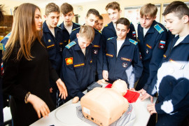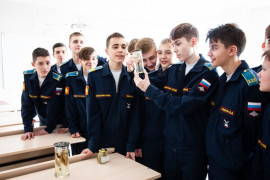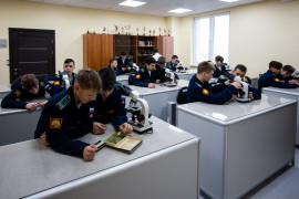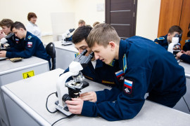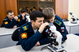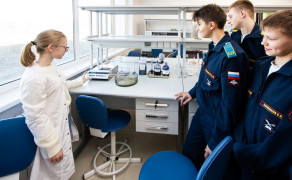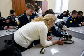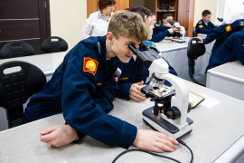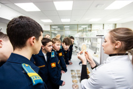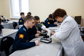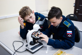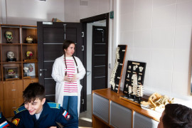 Также восьмиклассники познакомились с коллекцией микроскопических препаратов крови. Аспиранты факультета провели кадетам экскурсии по базовой кафедре микробиологии, анатомии и физиологии, биохимии, молекулярной биологии медицины. На практике кадеты попробовали свои силы в лаборатории микробиологии, анатомии и гистологии и лаборатории микроскопических исследований.