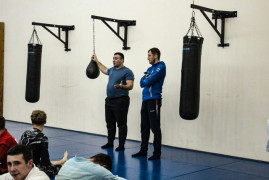 Тренер сборной воспитанников Ставропольского президентского кадетского училища по армейскому рукопашному бою Гегагм Араратович Асатрян совместно с тренером сборной по АРБ Аксайского Данилы Ефремова казачьего кадетского корпуса Светчаевым Алексеем Владимировичем провели тренировку для своих подопечных – кадет СПКУ и АДЕККК.