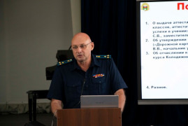 С докладом по первому вопросу выступил заместитель начальника училища по учебной работе Сергей Владимирович Степанов. Он отметил, что освоение образовательной программы среди 9-х и 11-х классов было выполнено в полном объёме. Среди 114 девятиклассников аттестат особого образца с отличием получат 20 кадет.
